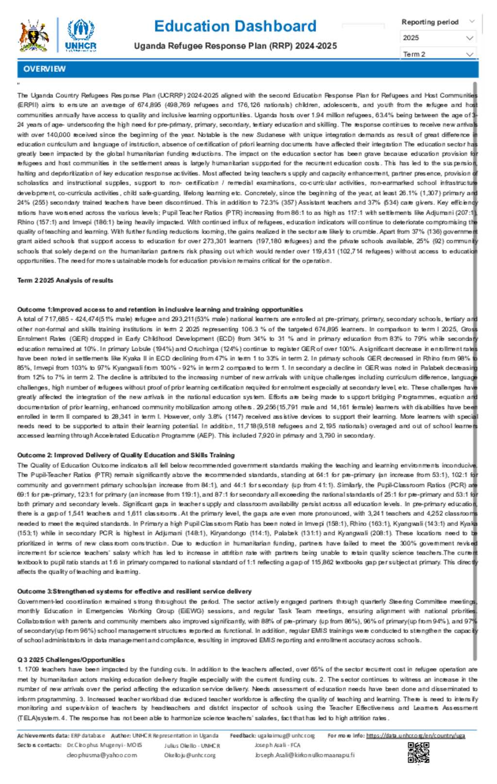 Uganda Refugee Response: Education dashboard Quarter 3 2025