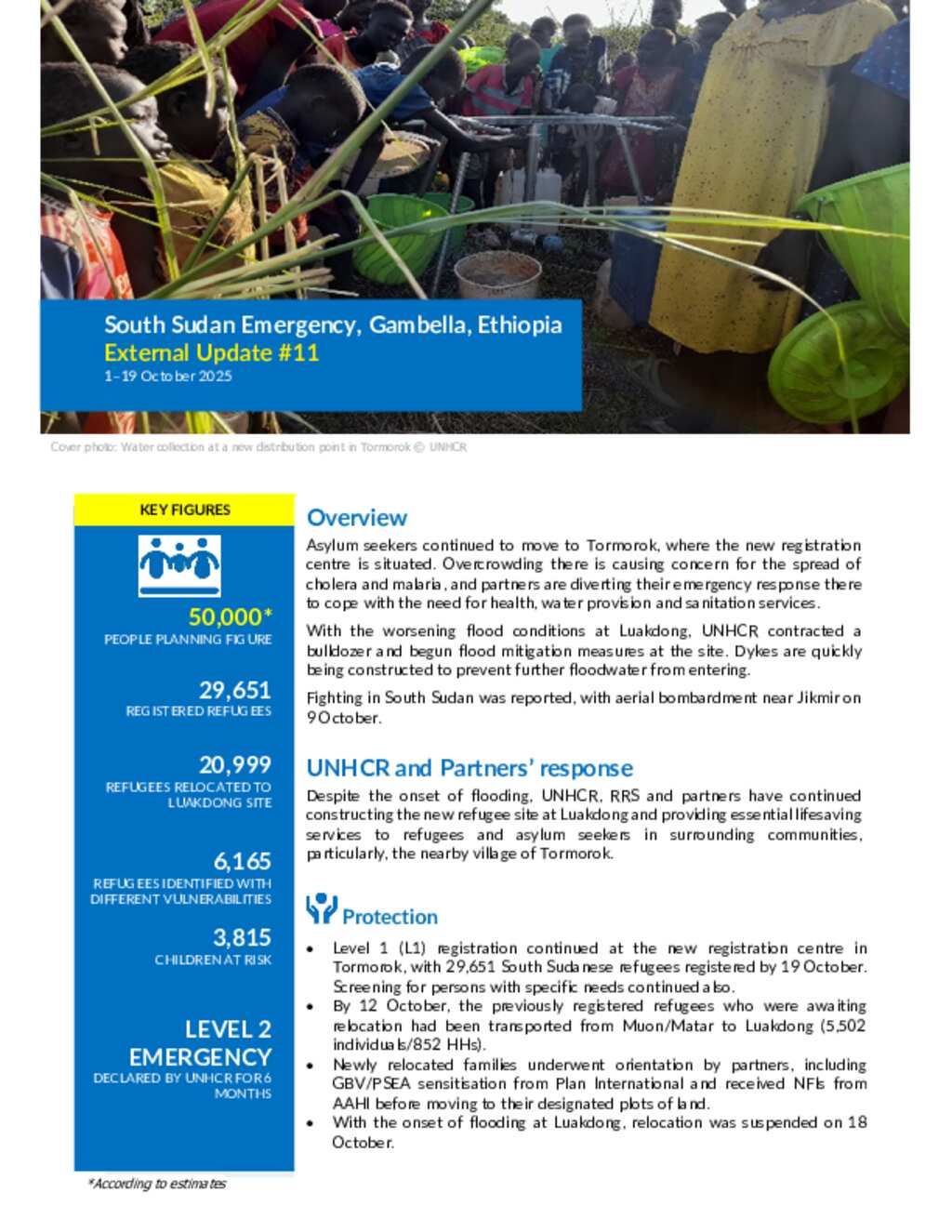 UNHCR Ethiopia | South Sudan Emergency External Update # 11 | 01-19 October 2025