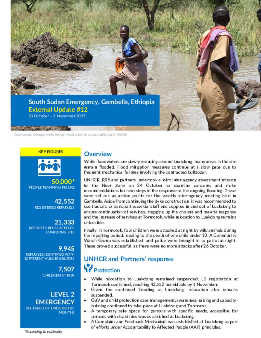 UNHCR Ethiopia | South Sudan Emergency External Update # 12 | 20 Oct - 02 Nov 2025