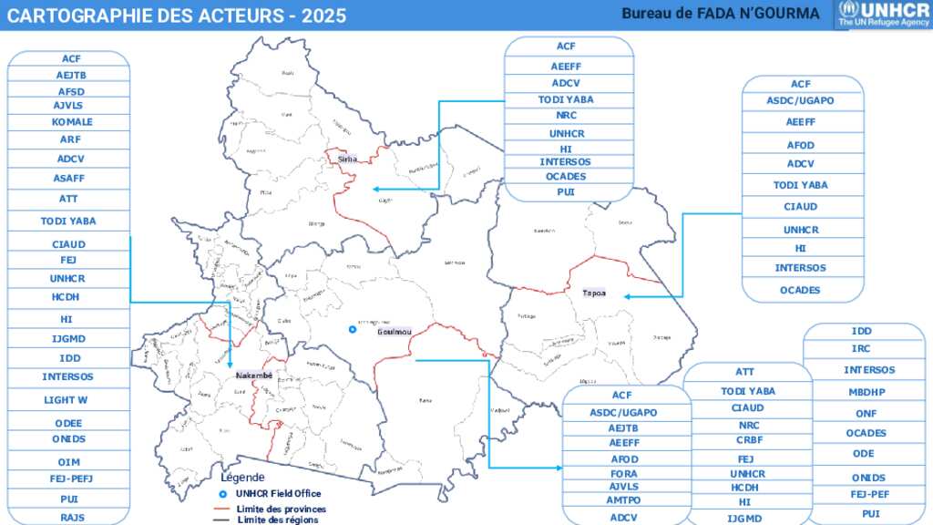 UNHCR BURKINA FASO - Cartographie des acteurs, régions couvertes par le bureau de Fada N’Gourma