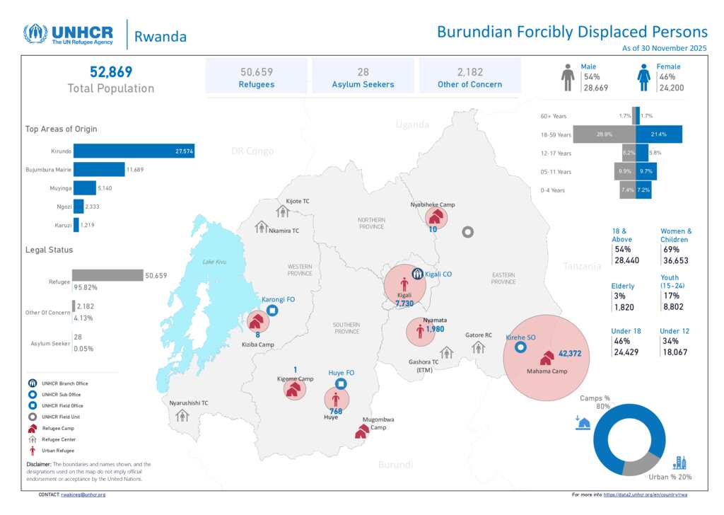 UNHCR Rwanda - Burundian Forcibly Displaced Population Figures - 30 November 2025