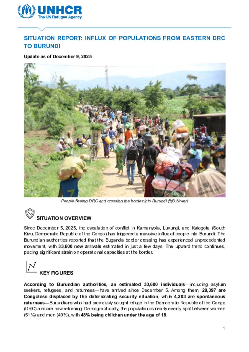 SITUATION REPORT: INFLUX OF POPULATIONS FROM EASTERN DRC TO BURUNDI - Update as of 9 December 2025