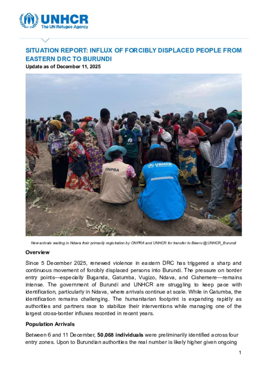 SITUATION REPORT: INFLUX OF FORCIBLY DISPLACED PEOPLE FROM EASTERN DRC TO BURUNDI Update as of December 11, 2025