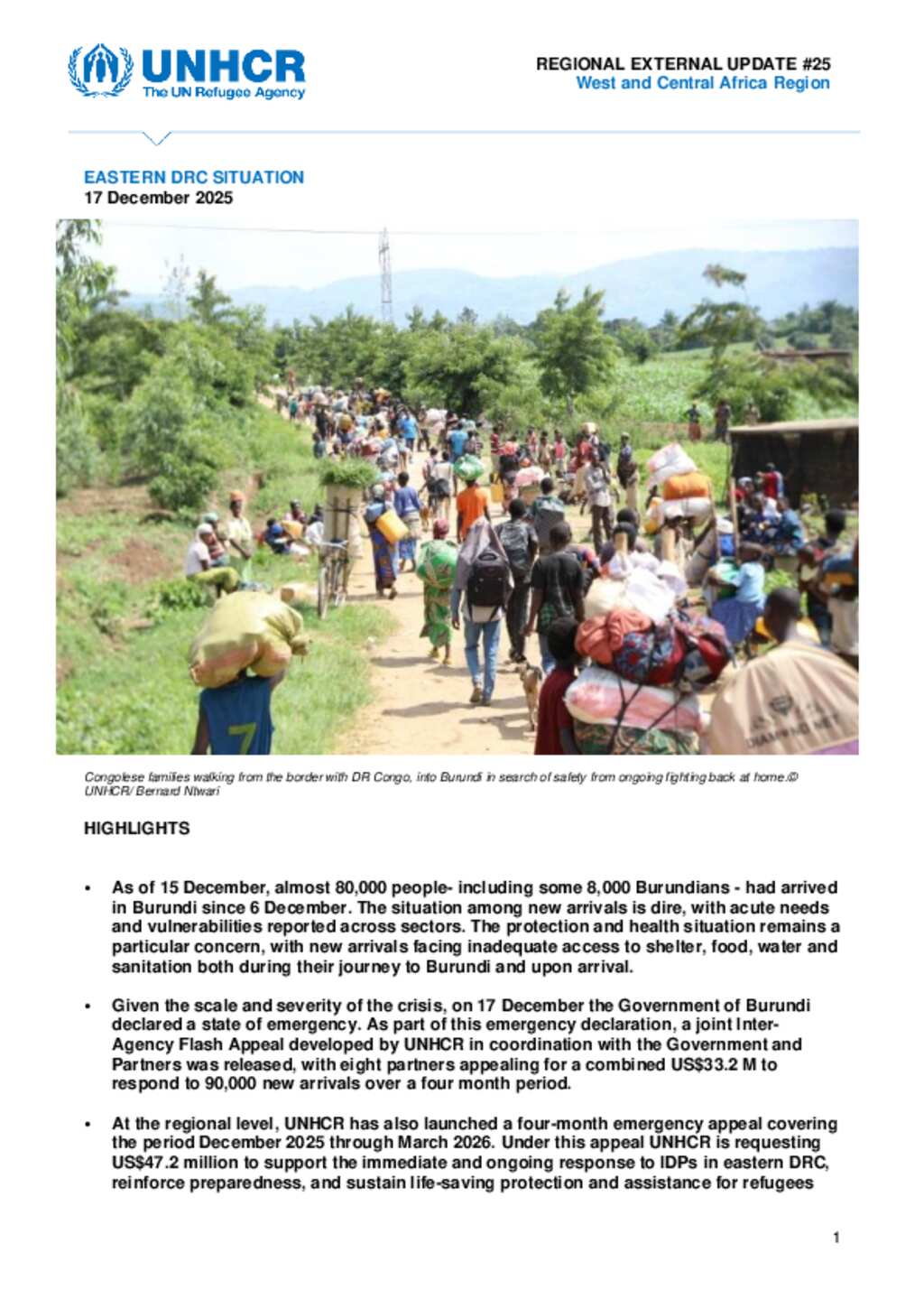 REGIONAL EXTERNAL UPDATE #25 West and Central Africa Region - EASTERN DRC SITUATION - 17 December 2025