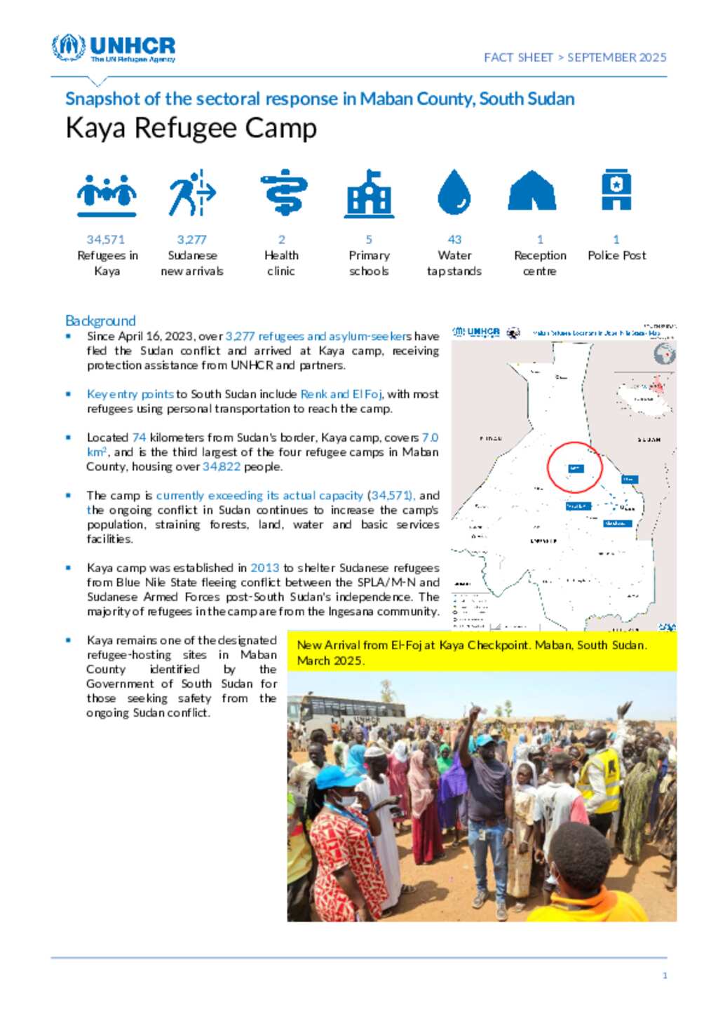 South Sudan - Kaya Camp Factsheet - Maban County - September 2025