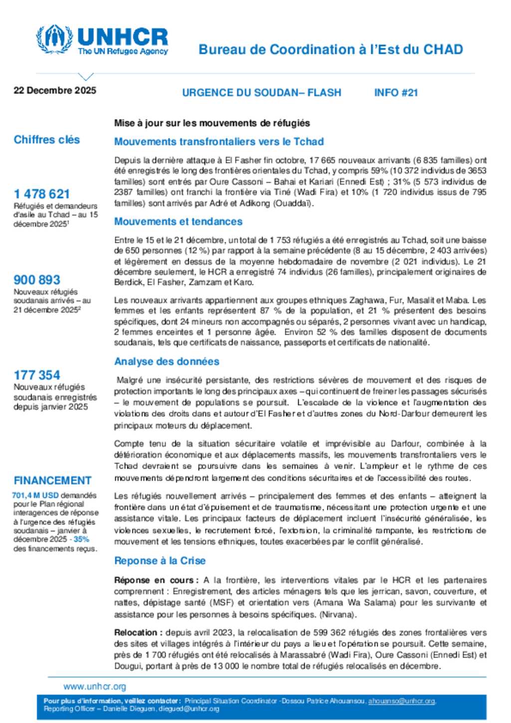 Flash Update #38 Nouvel afflux de réfugiés soudanais au Tchad