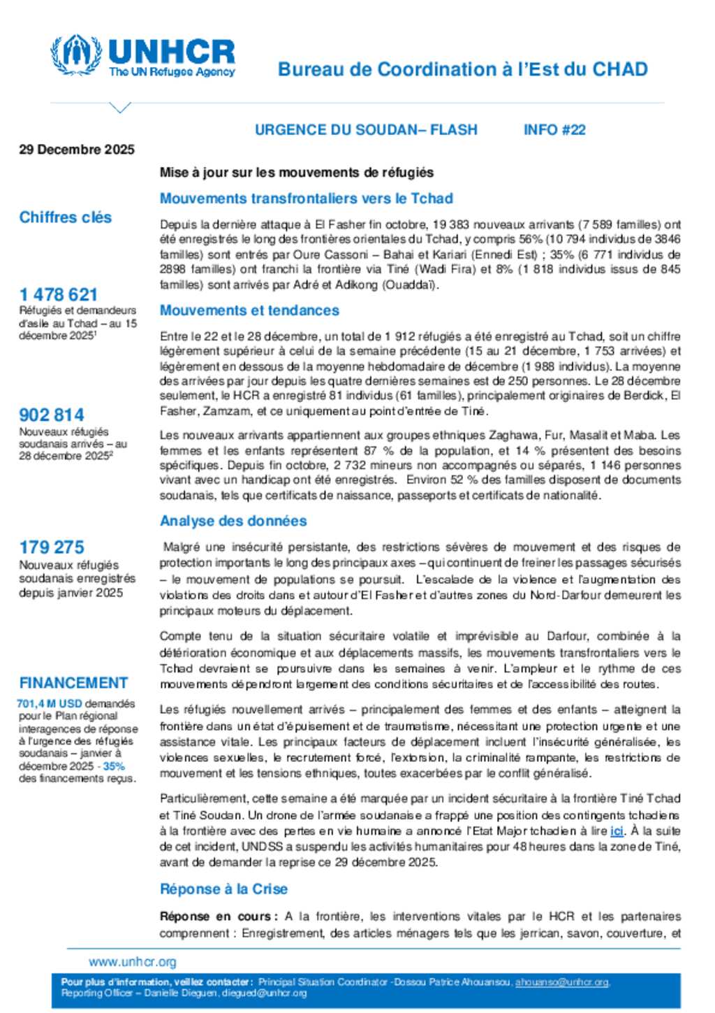 Flash Update #39 Nouvel afflux de réfugiés soudanais au Tchad