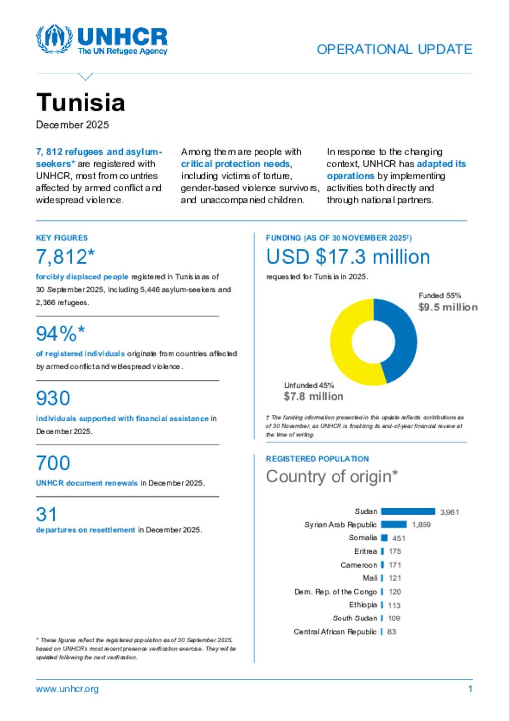 UNHCR Tunisia Monthly Operational Update ( December 2025 )