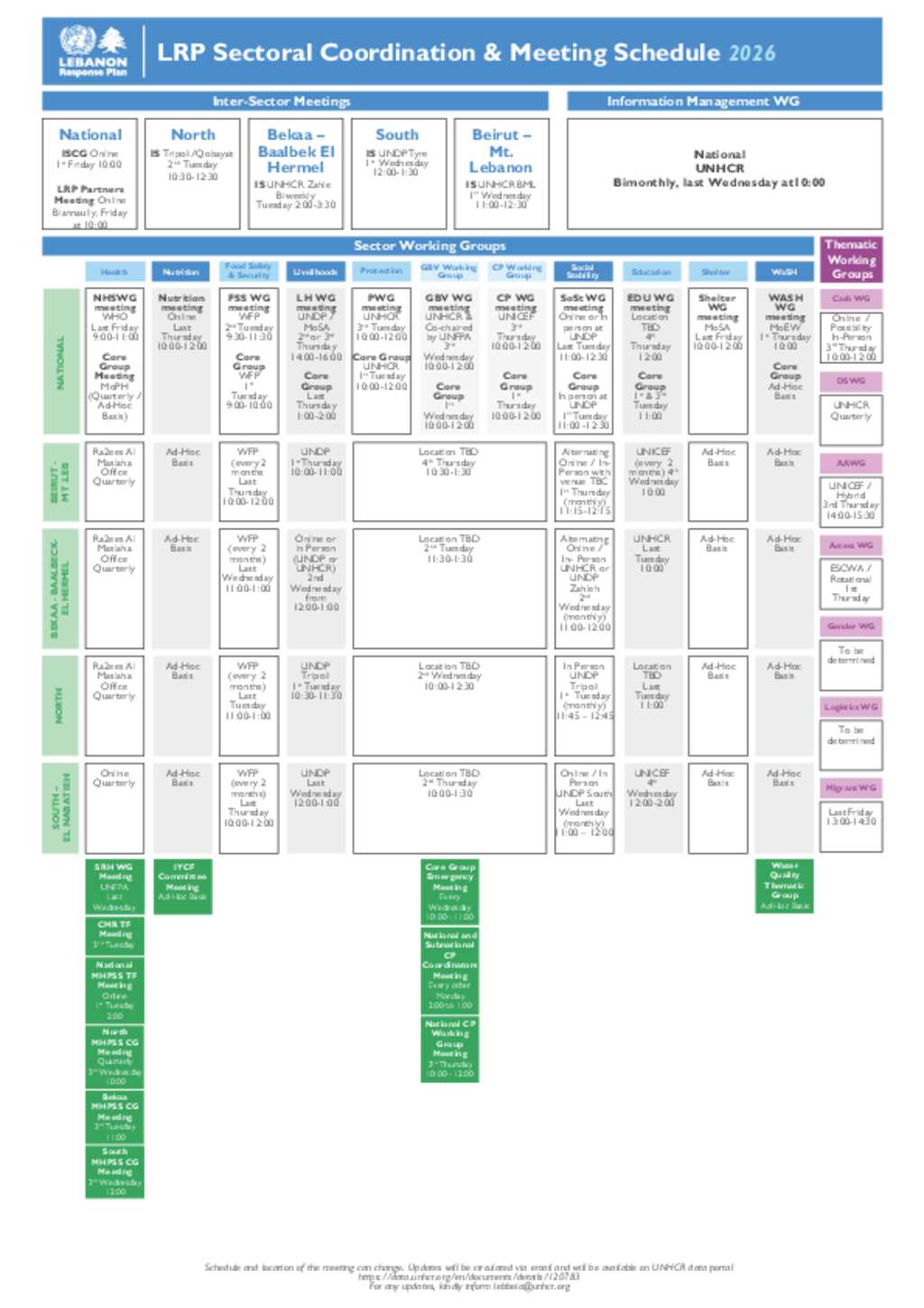Lebanon: LRP 2026 - Coordination and Meeting Calendar