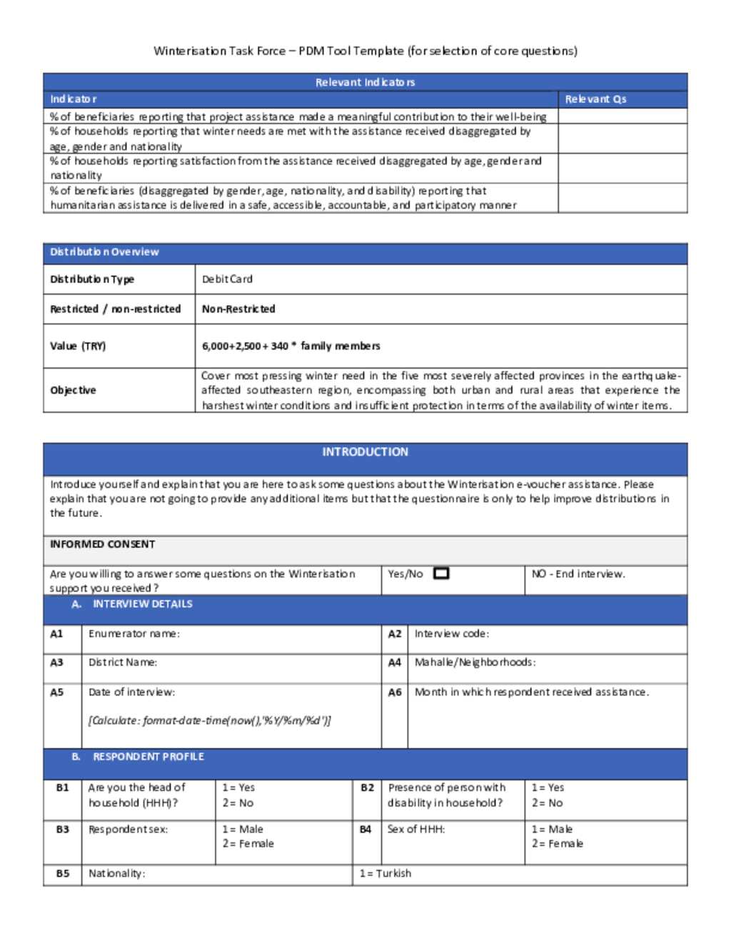 Türkiye: Winterisation Task Force – PDM Tool Template (for selection of core questions)