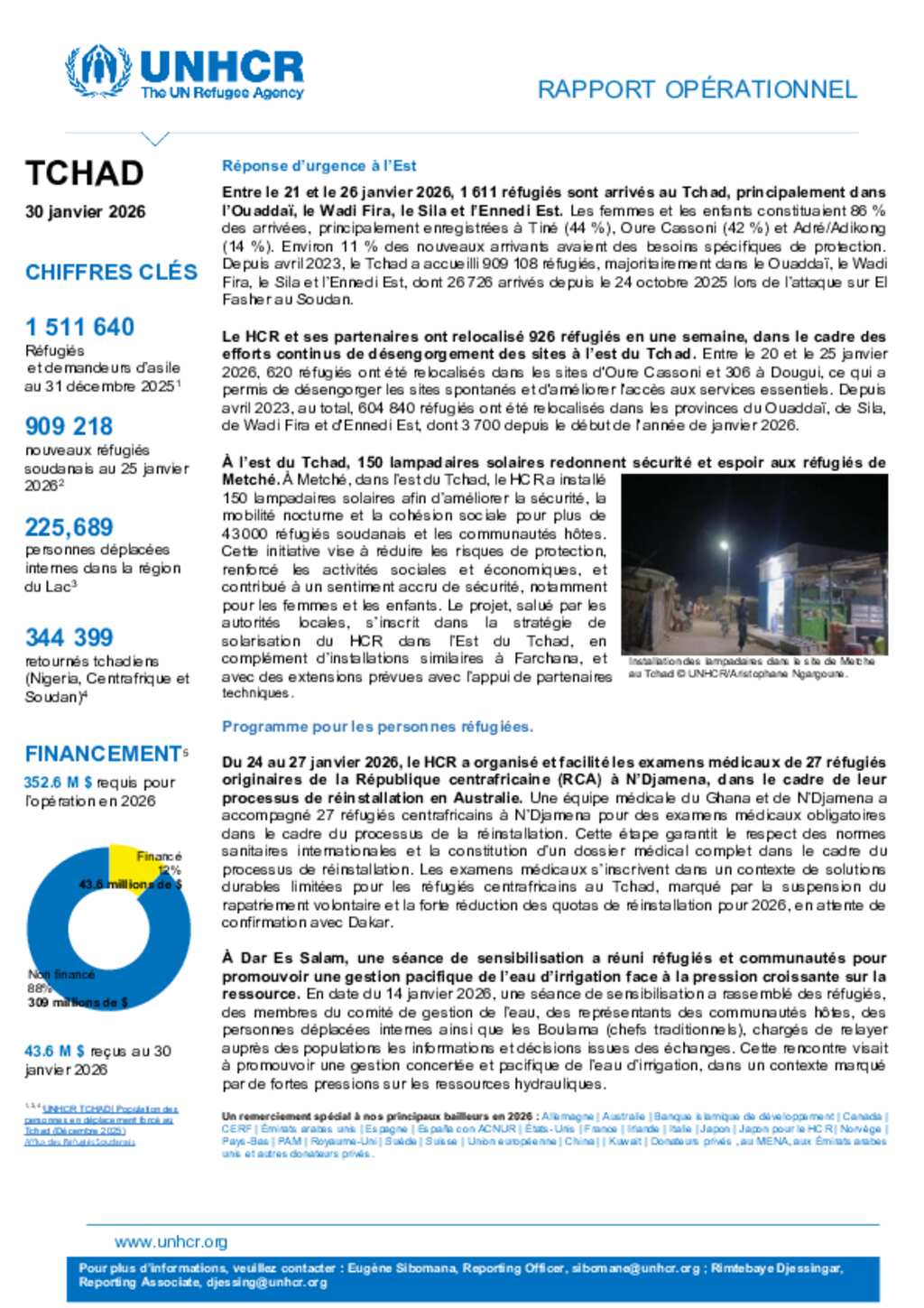 HCR TCHAD | Rapport opérationnel hebdomadaire du 30 janvier 2026