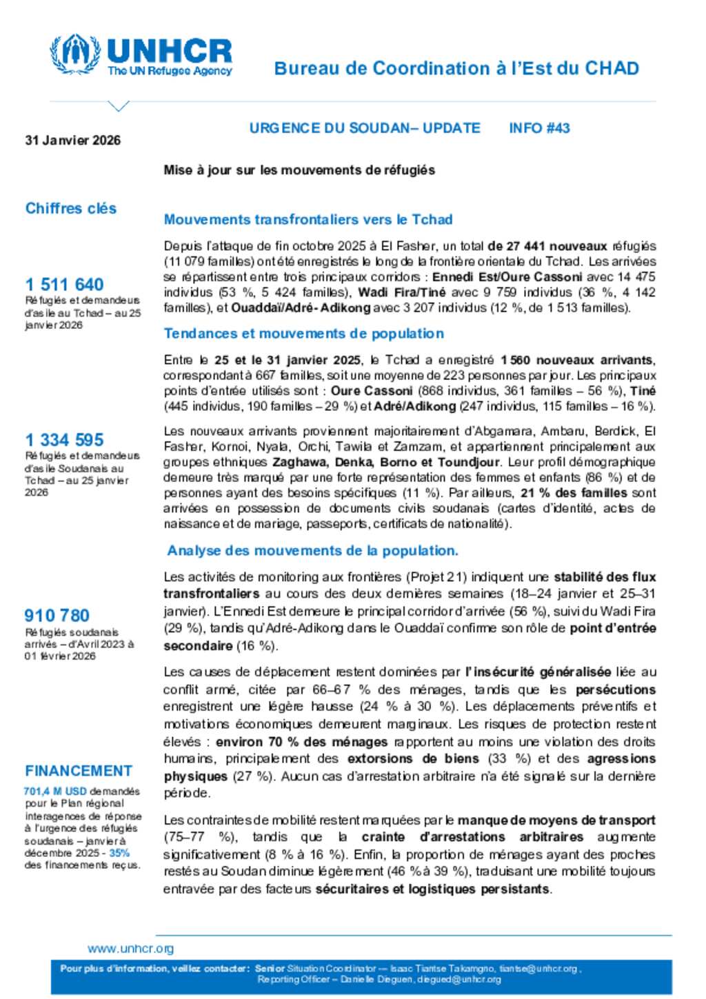 Flash Update #43 Nouvel afflux de réfugiés soudanais au Tchad