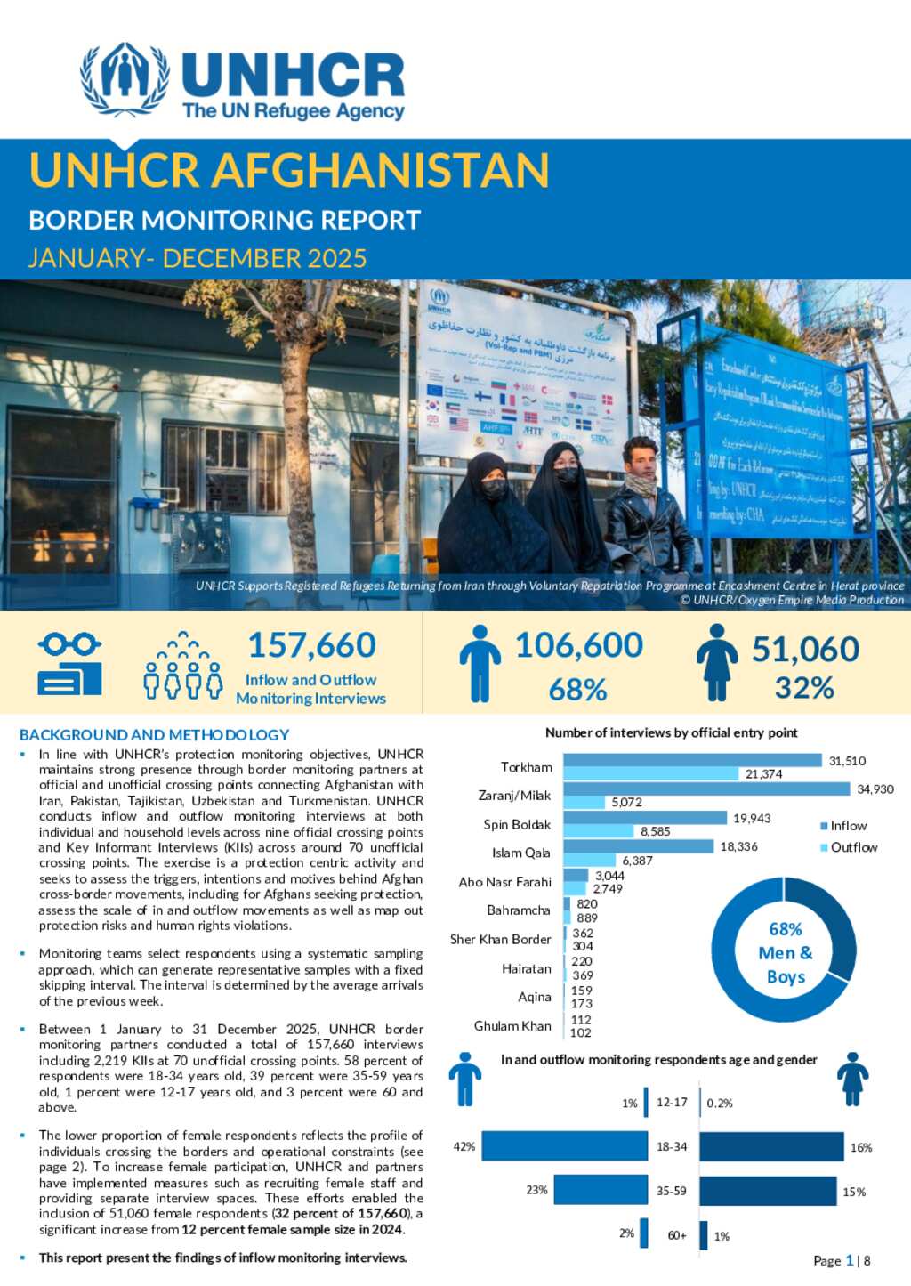 UNHCR Afghanistan Annual Border Monitoring Report January-December 2025