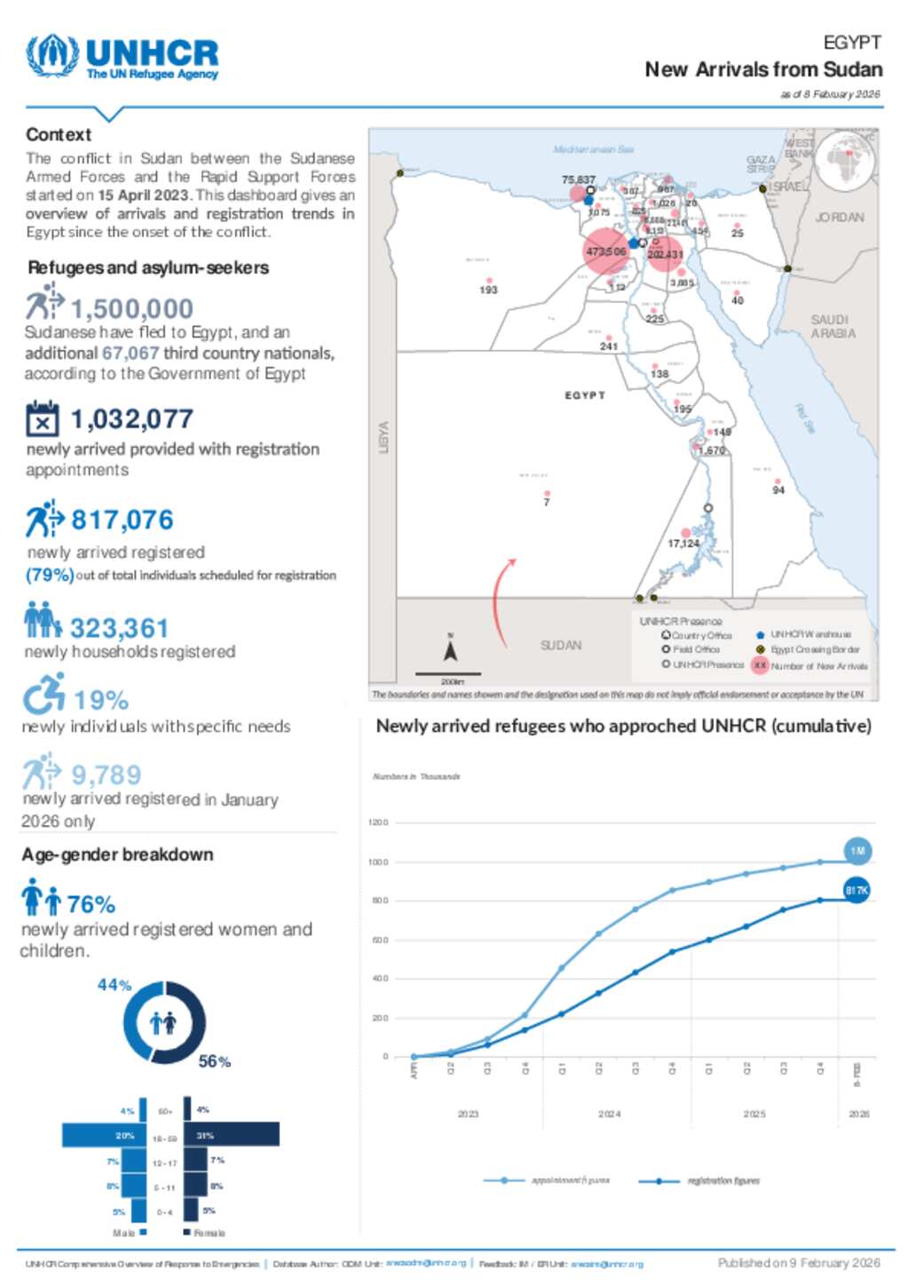 Egypt: New Arrivals from Sudan as of 8 February 2026