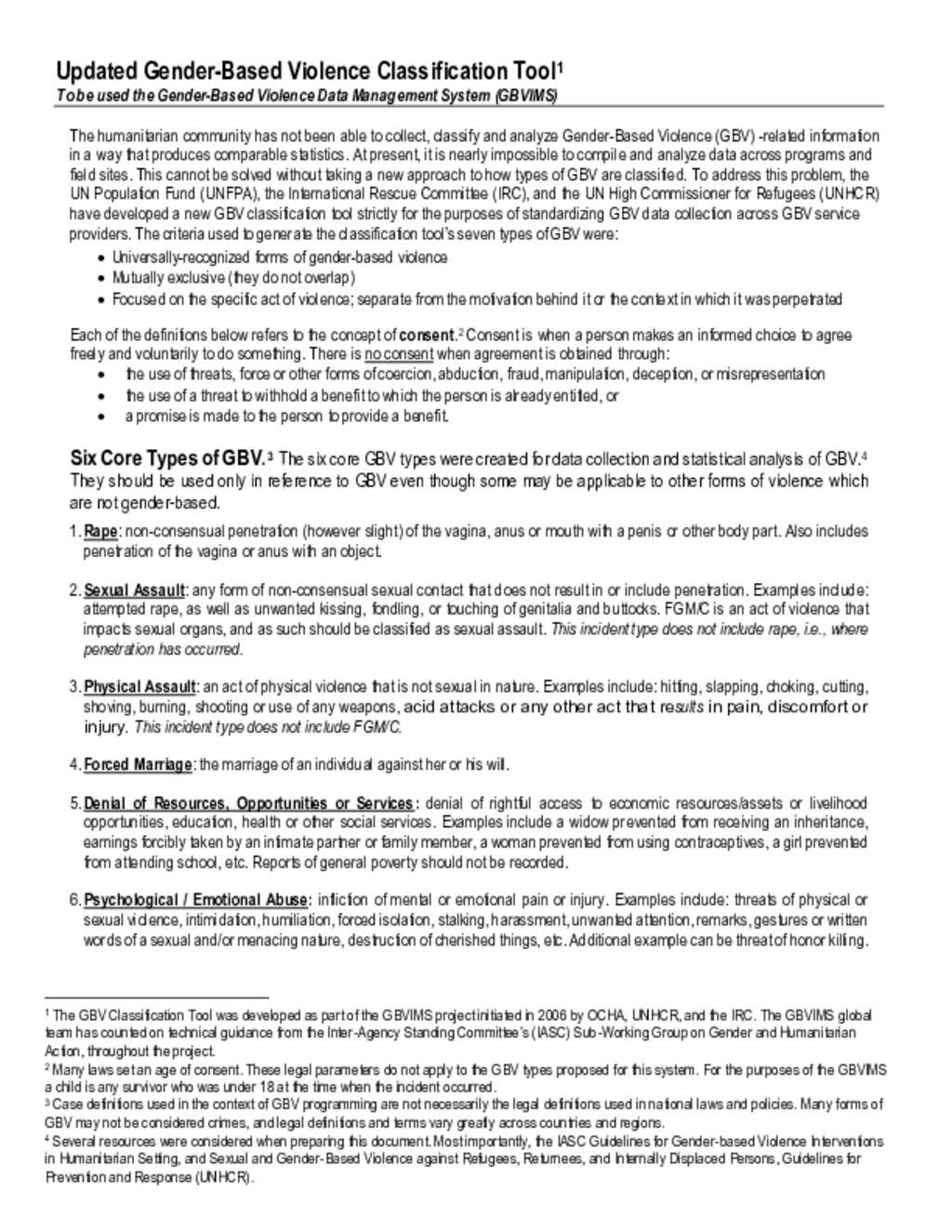 Türkiye: GBV Sub Sector - GBVIMS Classification Tool_Updated