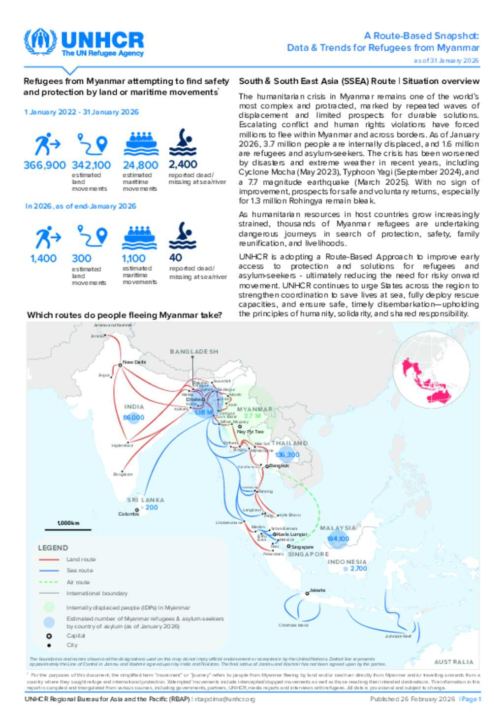 A Route-Based Snapshot: Data & Trends for Refugees from Myanmar, as of end-January 2026