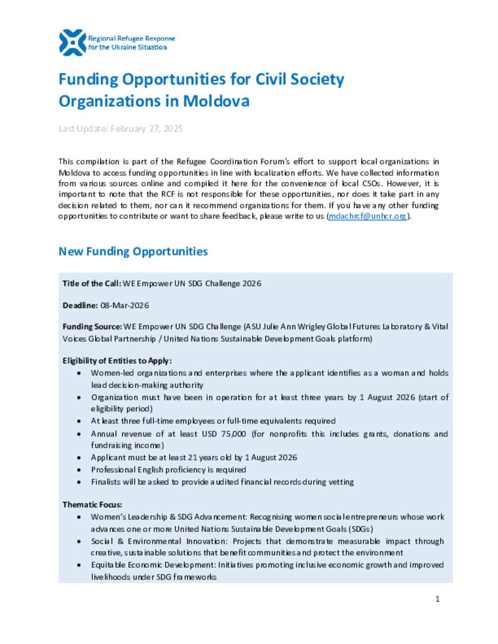 Ukraine Situation - Moldova: Funding Opportunities for Local CSOs in Moldova (March 2026) (EN)
