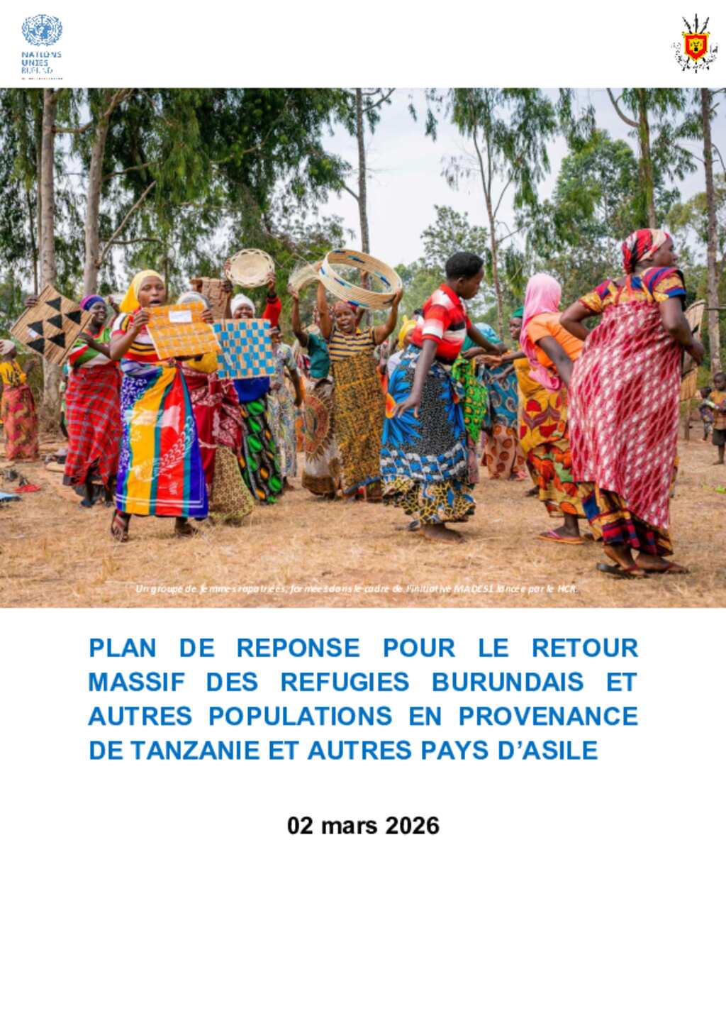 PLAN DE REPONSE POUR LE RETOUR MASSIF DES REFUGIES BURUNDAIS ET AUTRES POPULATIONS EN PROVENANCE DE TANZANIE ET AUTRES PAYS D’ASILE
