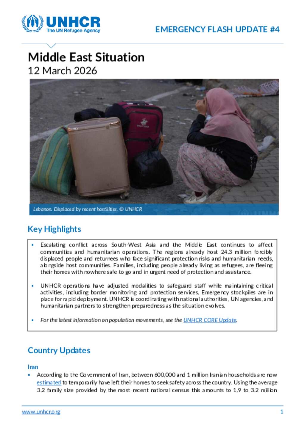 UNHCR Middle East Situation: Emergency Flash Update #4 - as of 12 March 2026