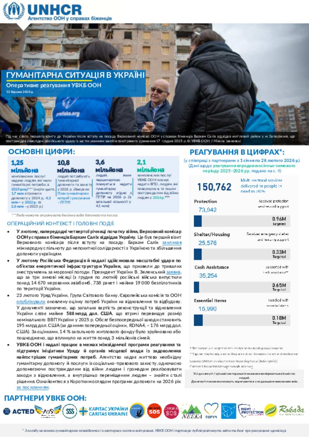 Гуманітарна ситуація в Україні: оновлення оперативного реагування УВКБ ООН. 12 березня 2026 р.