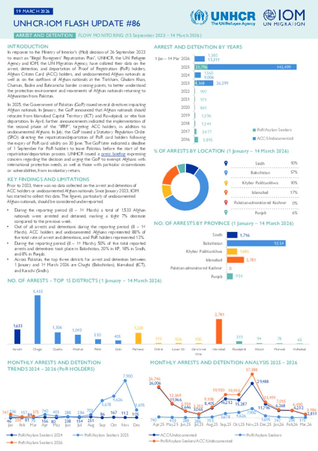 UNHCR-IOM Pakistan Flash update # 86 on Arrest and Detention/Flow Monitoring, 15 Sep 2023 to 14 March 2026