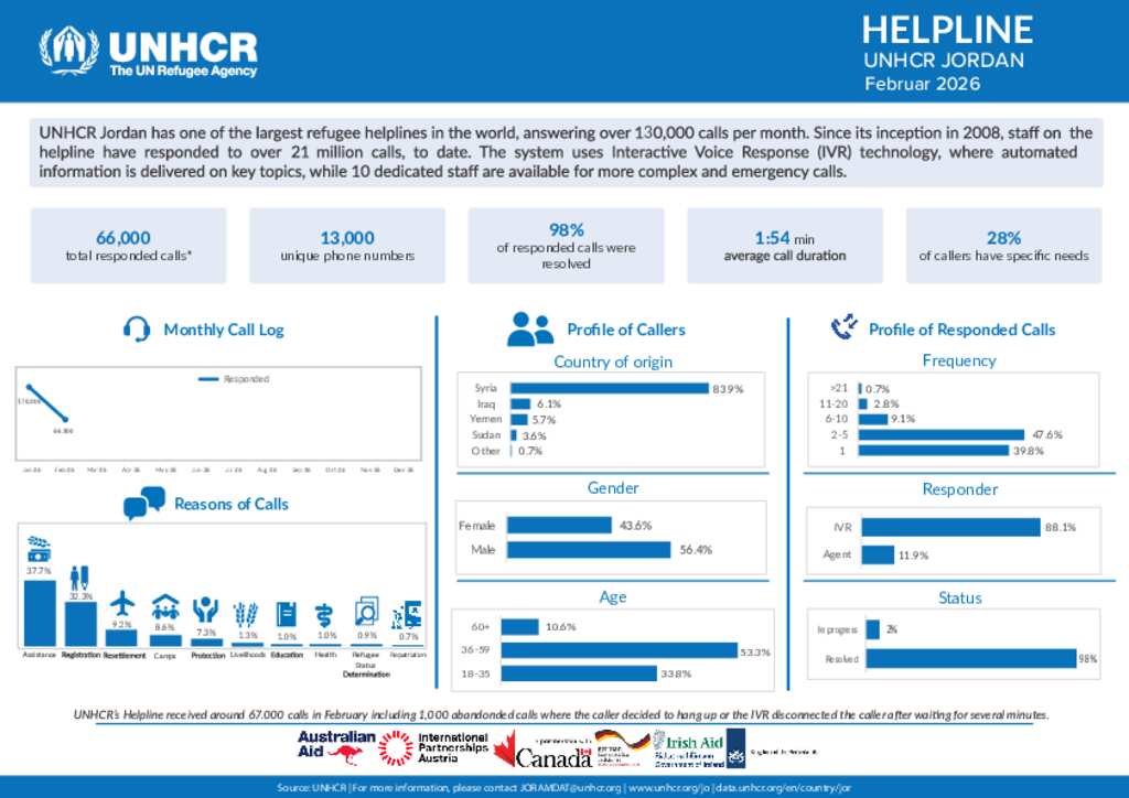 Jordan: Helpline Monthly Dashboard (Febuary2026)