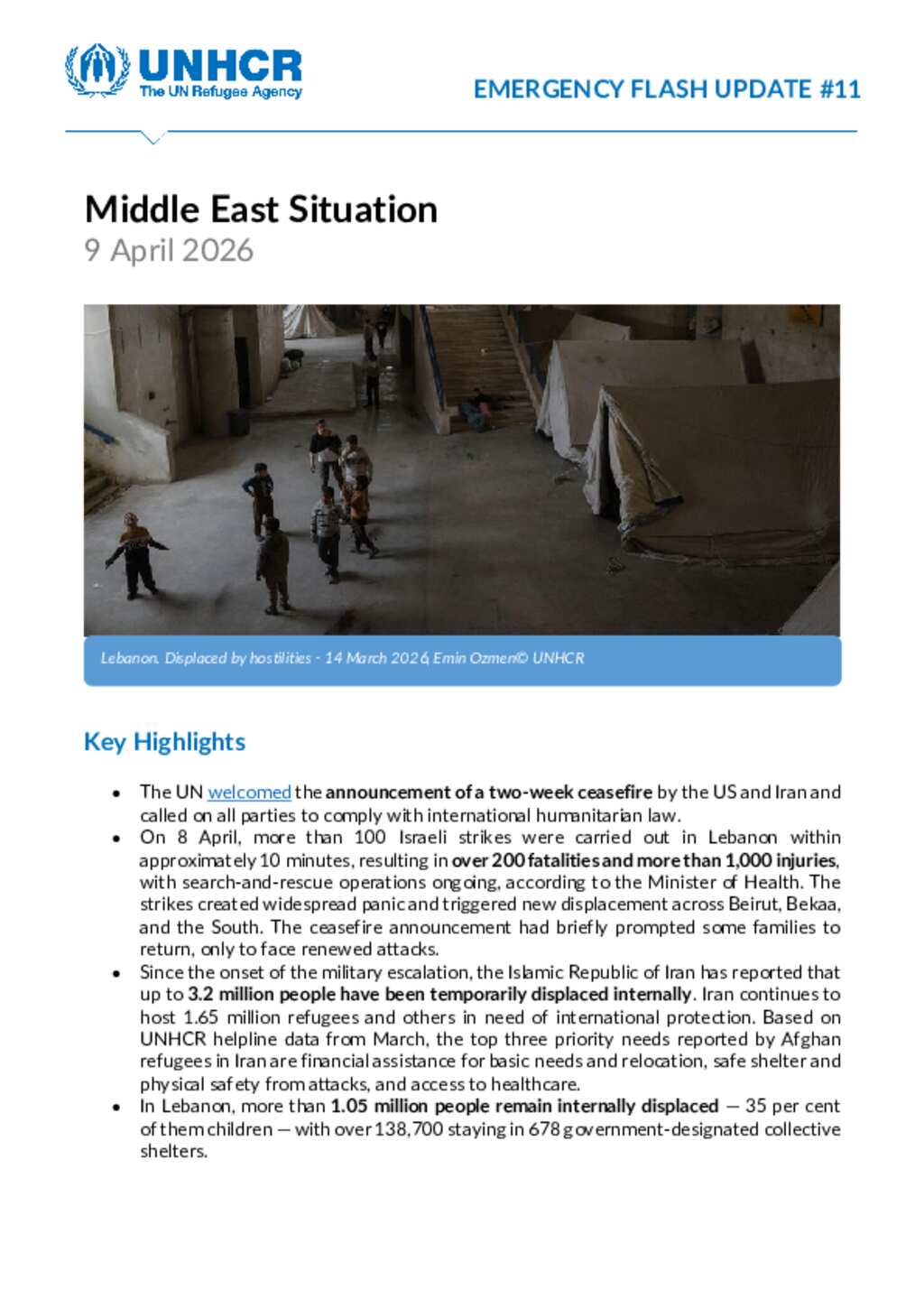UNHCR Middle East Situation: Emergency Flash Update #11 as of 9 April 2026