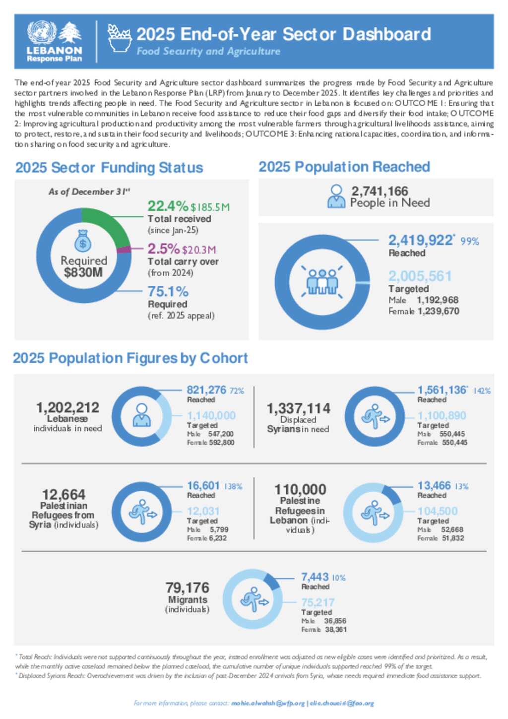 Lebanon Response Plan: Food Security & Agriculture Sector Dashboard - End of Year 2025
