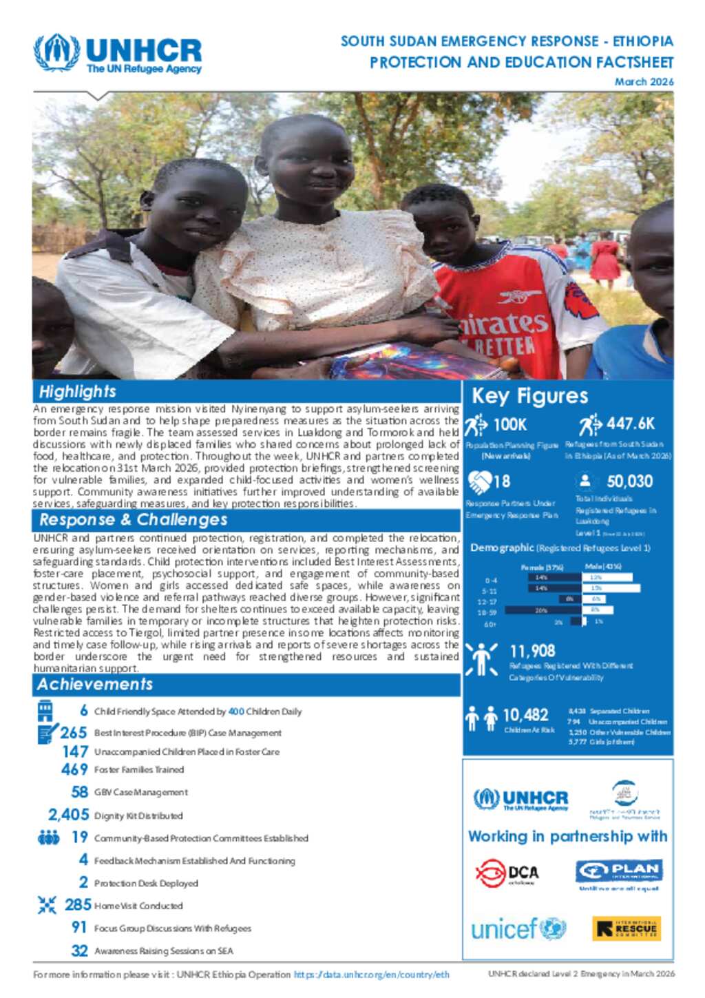 UNHCR Ethiopia South Sudan Emergency Thematic Factsheet Protection as of 31 March 2026