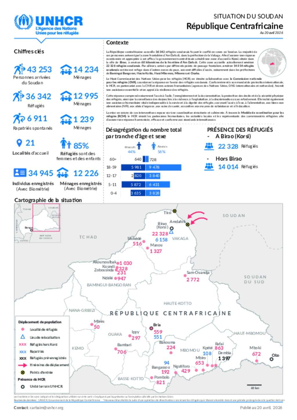 RCA - SITUATION DU SOUDAN - 20 Avril 2026