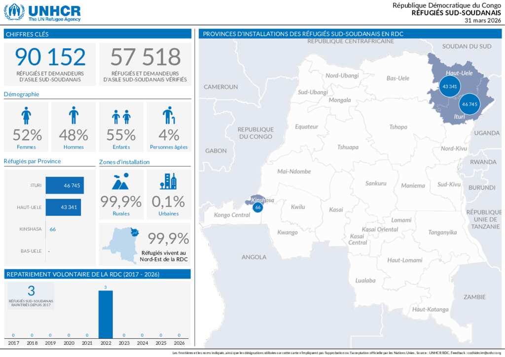 Situation des réfugiés Sud-soudanais en RDC au 31 mars 2026