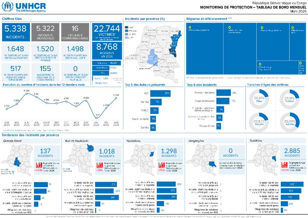 République Démocratique du Congo - Tableau de bord de Monitoring de Protection au 31 mars 2026