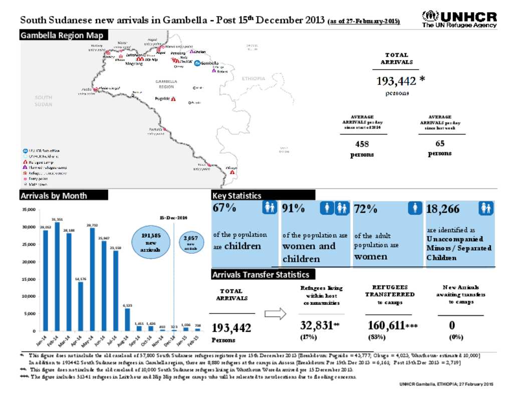 New arrivals in Gambella, Ethiopia as of 27 February 2015