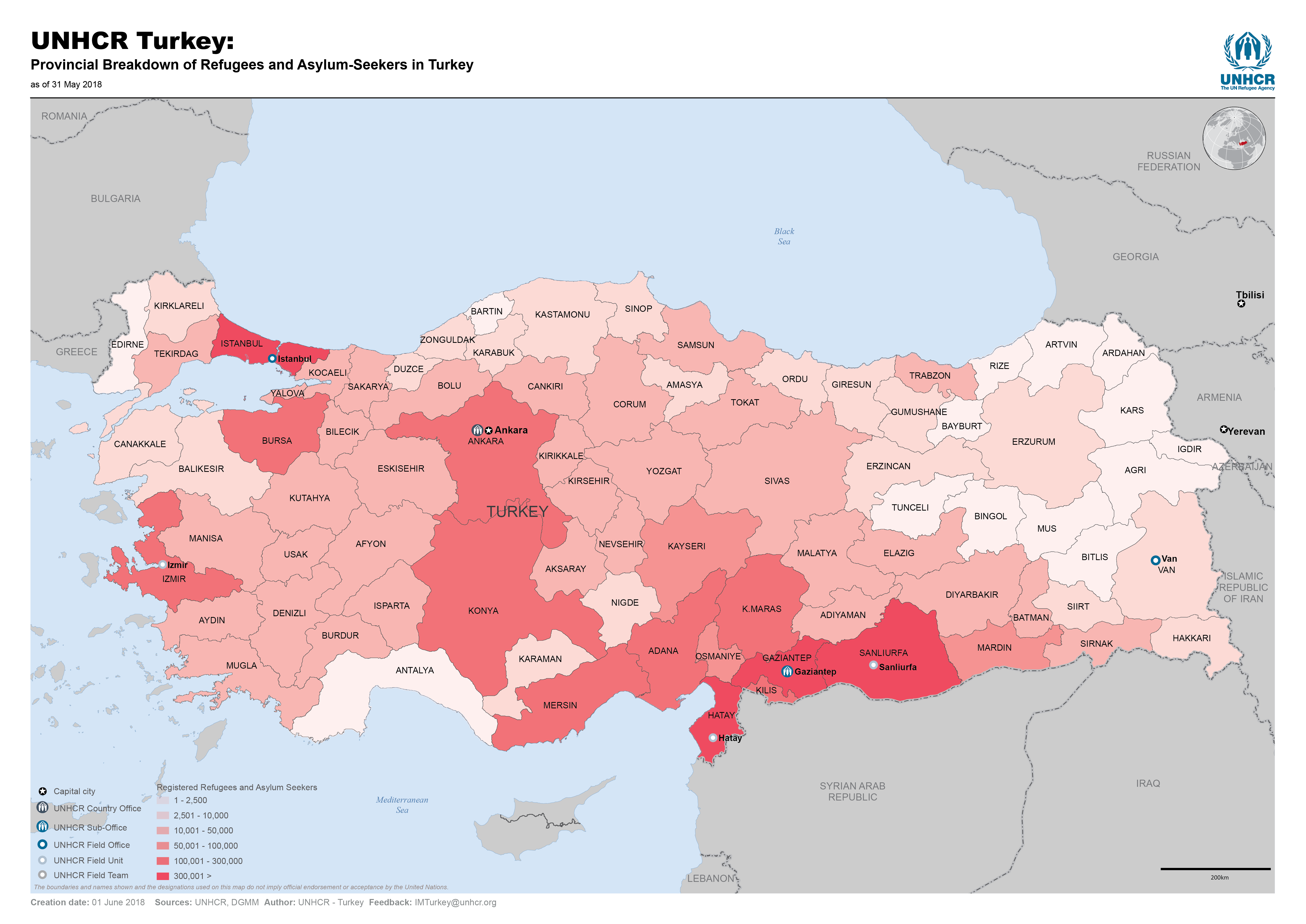UNHCR Turkey: Provincial Breakdown All Refugees and Asylum-Seekers in Turkey - June 2018