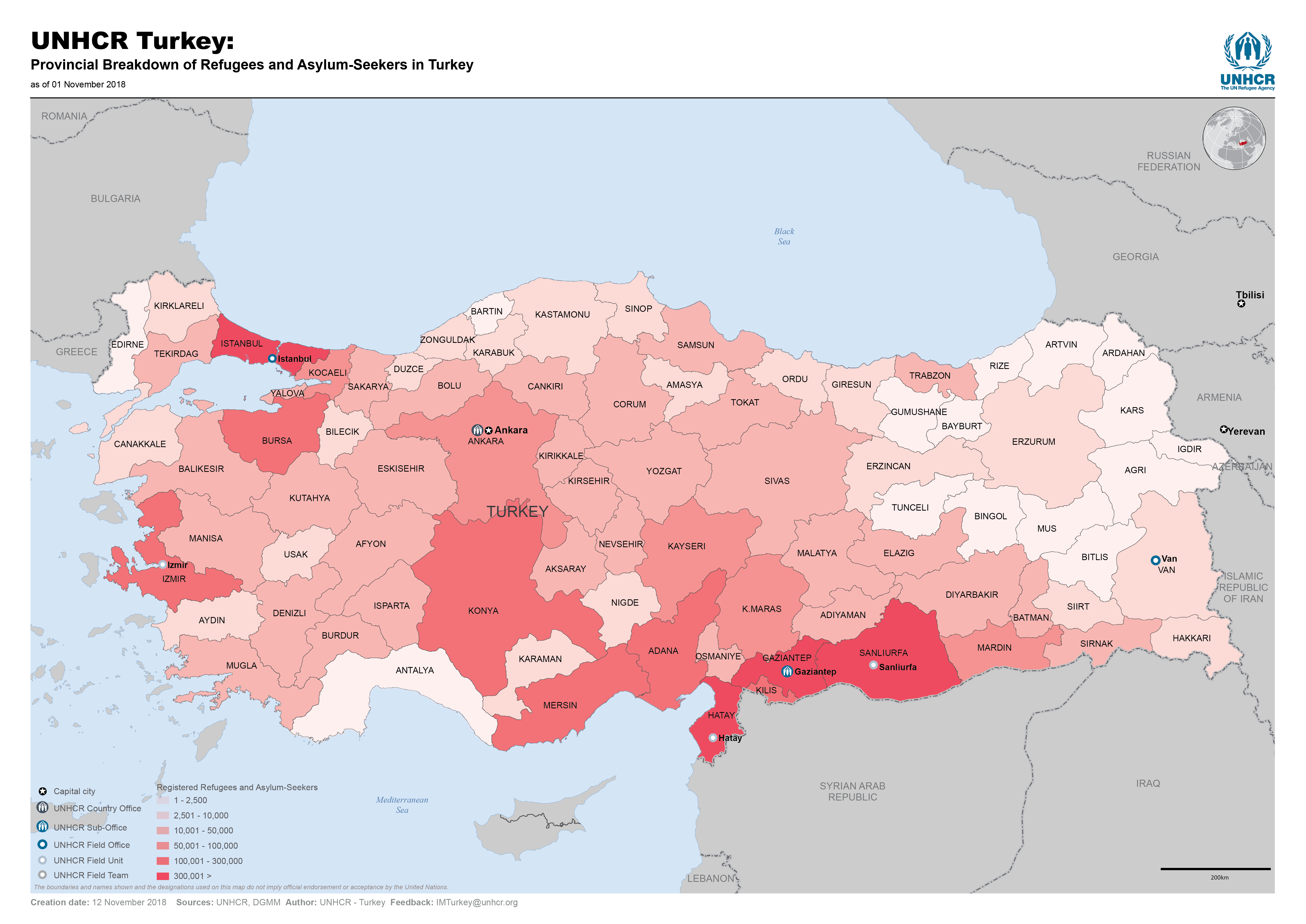 UNHCR Turkey: Provincial Breakdown All Refugees and Asylum-Seekers in Turkey - November 2018
