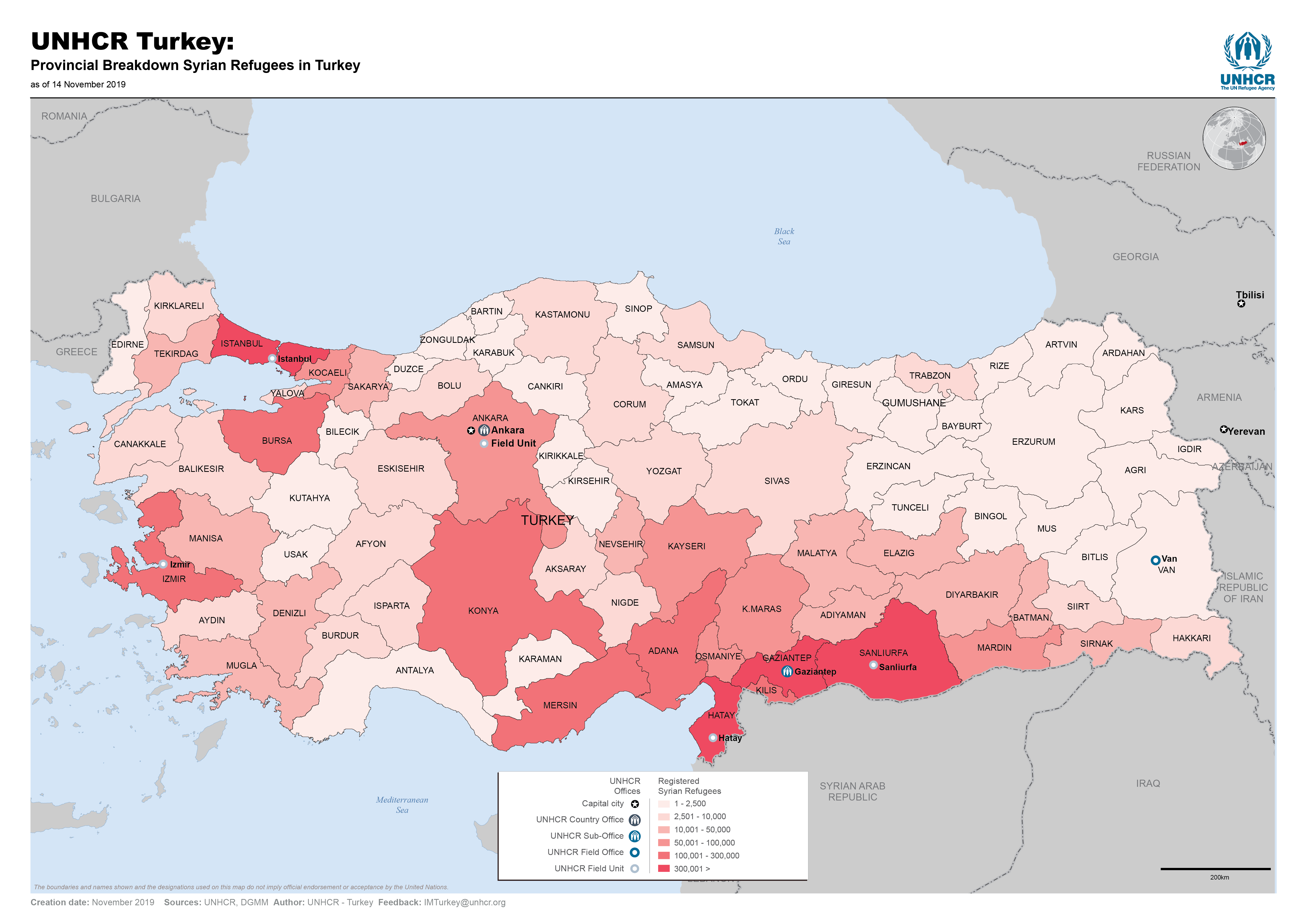 UNHCR Turkey: Provincial Breakdown Syrian Refugees in Turkey - November 2019