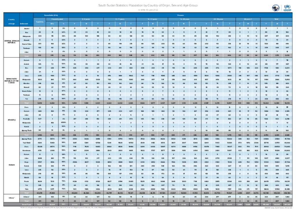 South Sudan Refugee Statistics Population by Country of Origin_June 2022