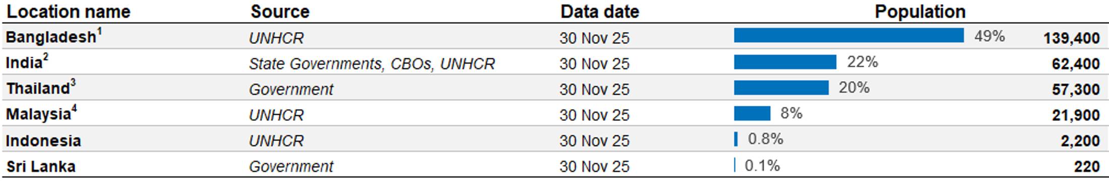 | Malaysia | UNHCR | 30 Nov 2025 | 12.0% | 191,500 |