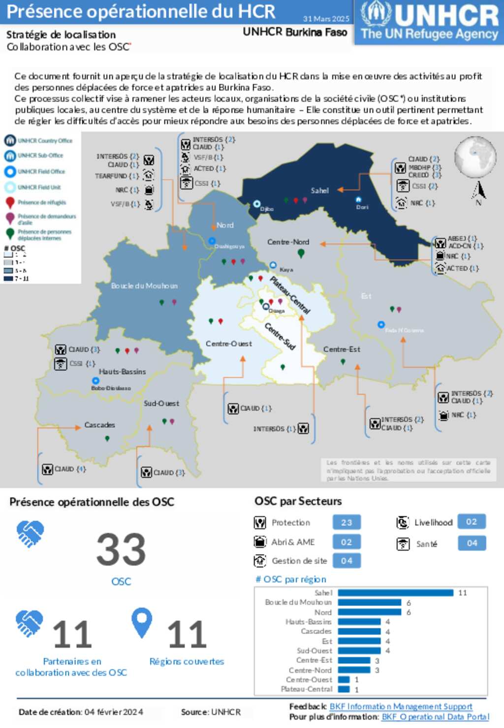 UNHCR BURKINA FASO - Présence opérationnelle du HCR : Stratégie de localisation au 31 mars 2025