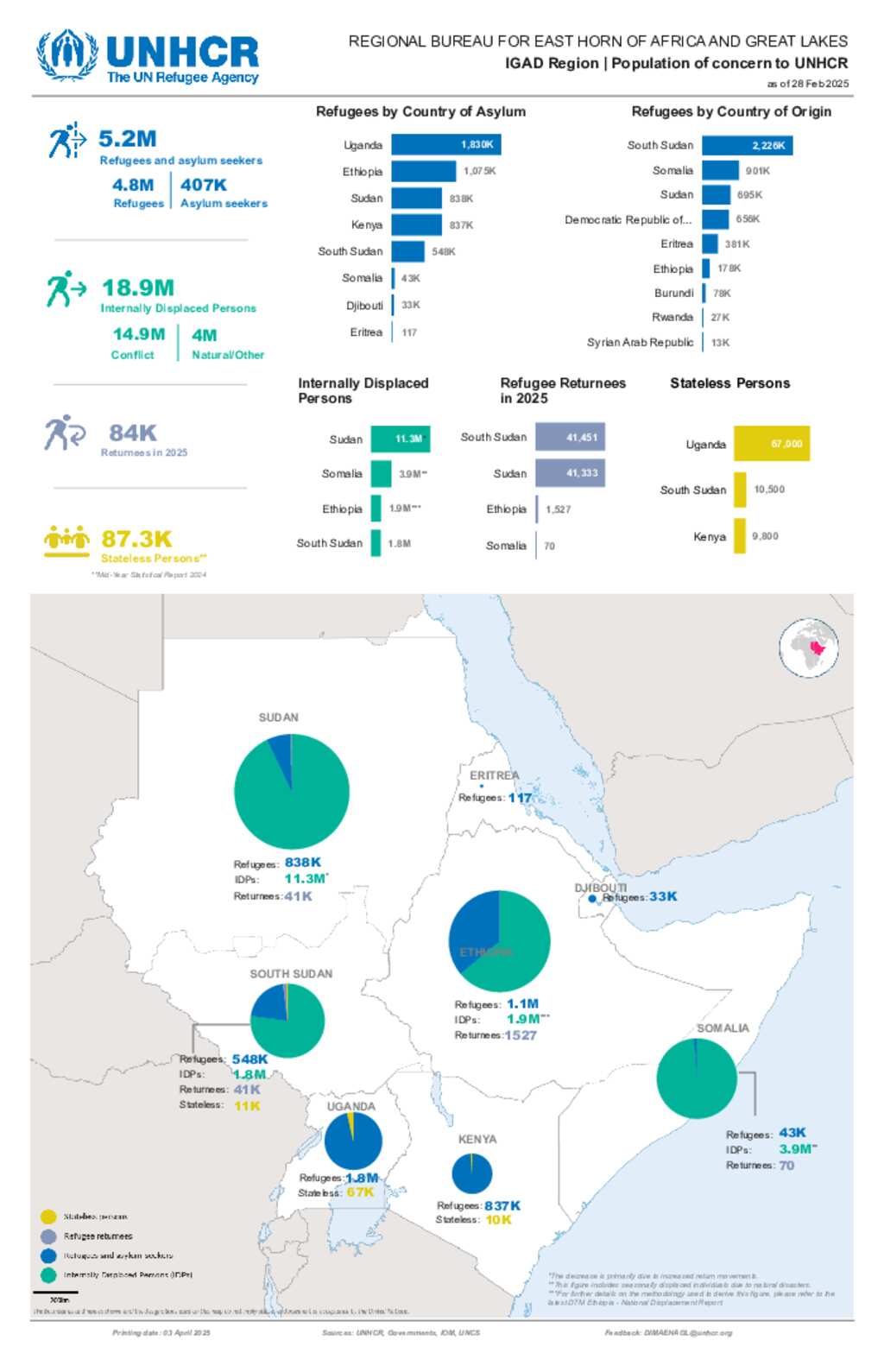 Regional Dashboard RB EHAGL: Refugees, returnees and internally displaced persons in the IGAD region - 28 February 2025