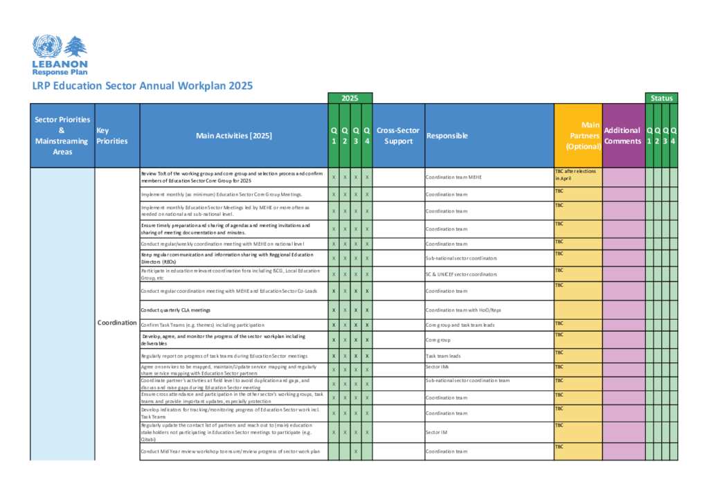 Lebanon Response Plan: Education Sector Annual Work Plan - 2025
