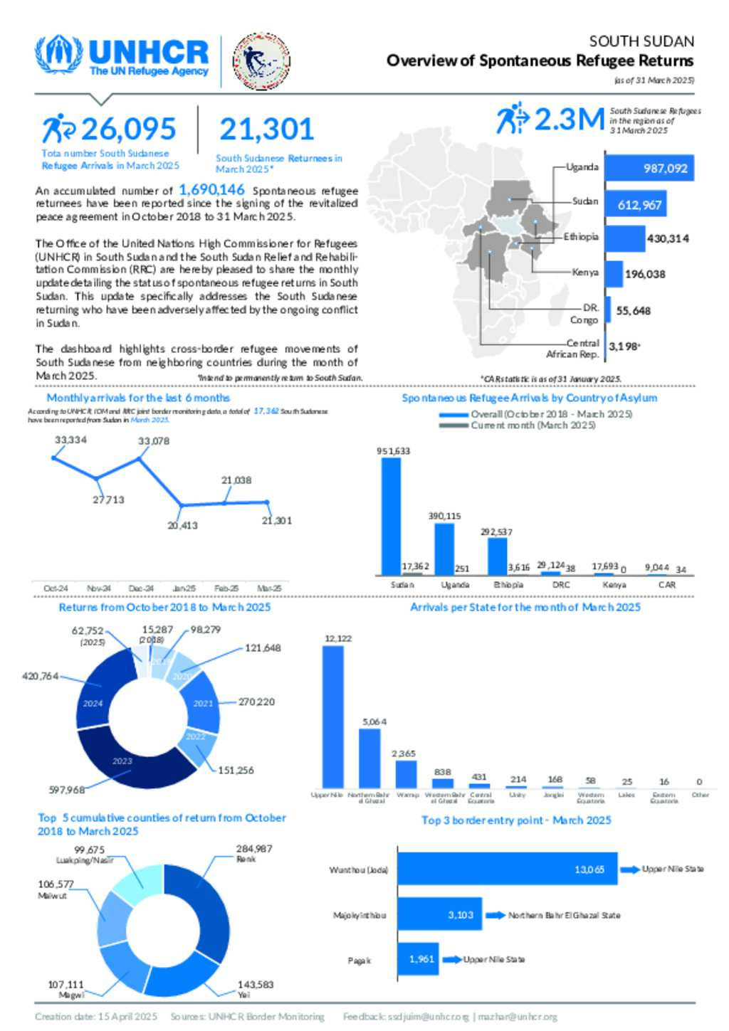 South Sudan - Spontaneous Refugee Returns Dashboard - 31 March 2025