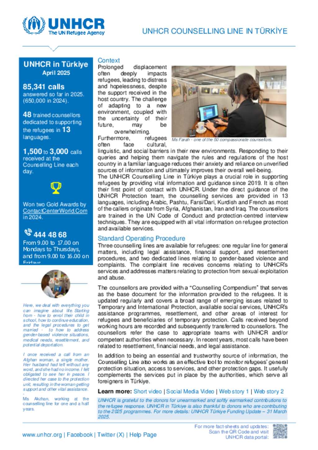 Factsheet _ Counselling Line _ UNHCR in Turkiye _ April 2025
