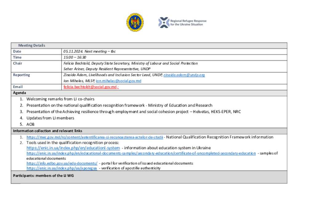 Ukraine situation: Moldova: Livelihoods and Inclusion Working Group Meeting Minutes (05 November 2024)
