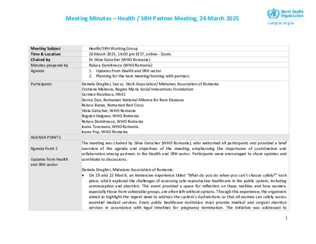 Health and SRH Working Group minutes - 26 March 2025
