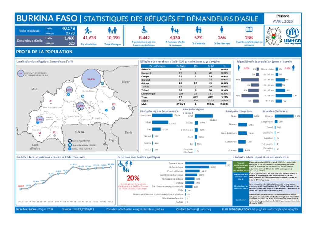 UNHCR BURKINA FASO - Rapport statisitiques des réfugiés et demandeurs d'asile au 30 avril 2025