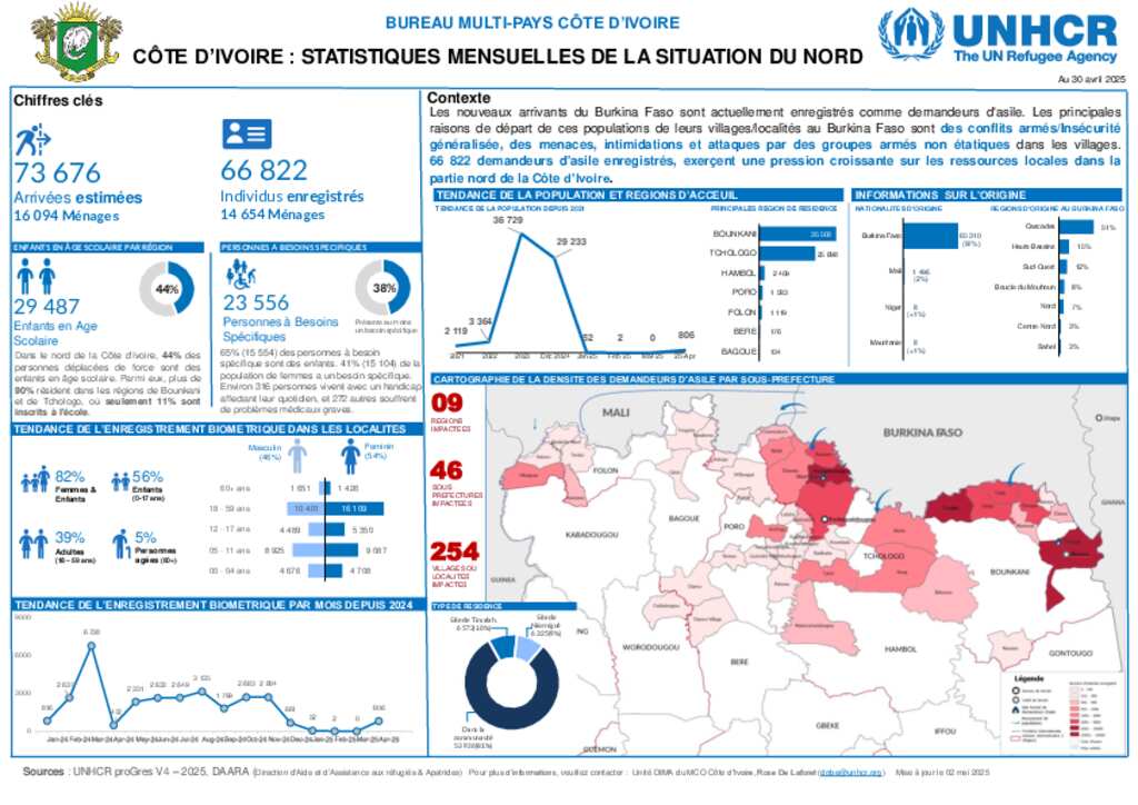 UNHCR Côte d'Ivoire - Dashboard Situation du Nord 30 avril 2025
