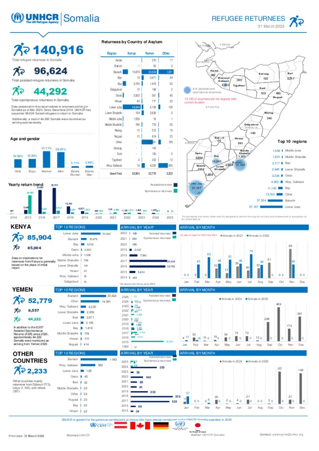 UNHCR Somalia Refugee Returnees Dashboard - March 2025