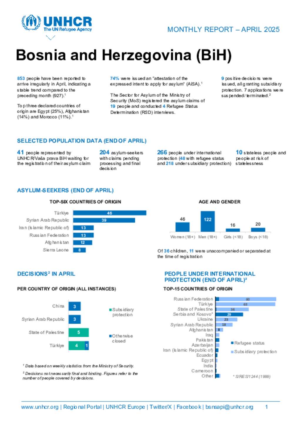UNHCR BiH monthly update - April 2025