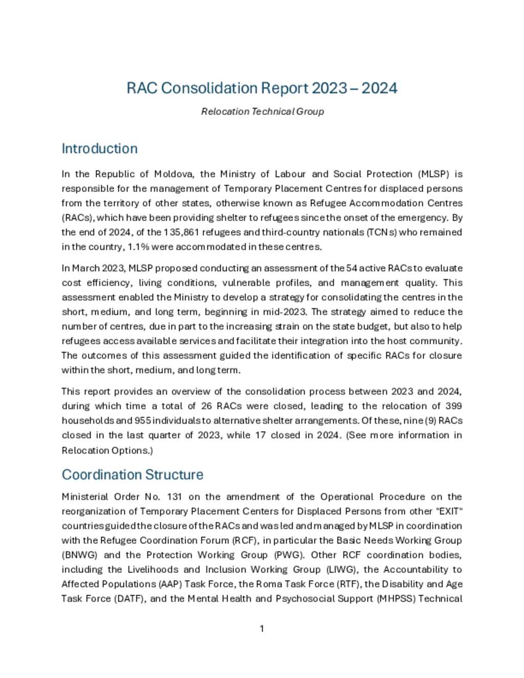 Ukraine Situation - Moldova: Refugee Accommodation Centres Consolidation Report 2023 - 2024 (ENG)